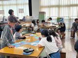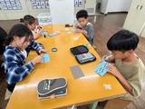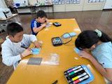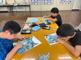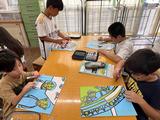 まずは、小さな木版を使って彫刻刀の試し彫りです。最初は、「ドキドキする。」「先生みたくうまくいかない。」「上手く彫れない。」と言っていましたが、掘り進めていくうちに、「何だか上手くいった!」「おもしろい!」という声が聞かれ、彫り終わる頃には、「5・6年生みたいな作品を作ってみたい。」と意欲を見せていました。用意していただいた彫刻刀、大事に使っていってほしいです。