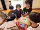 アンケートをとってみると、「小向の獅子舞」は、意外と知られていないことがわかり、是非、知ってもらいたい、見に行ってもらいたいとの思いから、「獅子舞イベント」を開催しました。休み時間に体育館でやりますと宣伝していたので、全校児童や保護者、獅子舞保存会の方々も、来てくださいました。「どうしたら、みんなが興味をもって獅子舞のことをわかってもらえるか。」について、よく考えました。「クイズに答えてもらって知ってもらう。」、「みんなが好きなビンゴをやりながら知ってもらう。」、「くじ引きを引いて、獅子舞のことを知ってもらって、賞品もあげたら喜ぶ。」、「射的もいいんじゃない。」、まず、みんなが興味をもってくれるブース作りにして、獅子舞に関することを知ってもらえるようにしていました。よく工夫されていて、獅子舞のことがわかり、もらって嬉しい景品もついてきました。