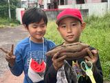 大きなさつまいもが取れて、大喜び!小さなさつもいもを見つけては、「かわいい!」とご満悦!さつまいもは、豊作。どんなさつまいも料理を作ろうかな。つるは、干してリースにするそうです。先輩たちから受け継いだ畑も3年目。土もよい土になりました。次は、何を植えようかな?いろいろ考えを巡らす2年生です。