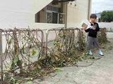 大きいバッタを捕まえた 音楽が鳴ると昇降口へ