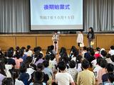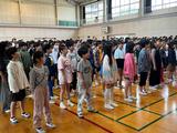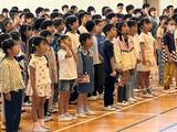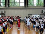 前期終業式、体育館に全校児童が集まりました。子どもたちの顔を見ながら話ができるのはいいなぁと思いました。西みのよい子は、しっかり話が聞けました。これから、10月25日の運動会に向けて、整列したり話を聞いたりしていきます。このような場所でも練習になります。