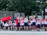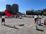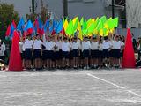 時間が変わり、みんなの運動会を創ってくれている5・6年生のフラッグの演技が始まりました。位置を確かめ、フラッグを操る姿に頼もしさを感じました。これまた楽しみですね。
