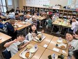 年に2回の自校献立の日。今回は、「ジャンボ餃子、味噌ラーメン、ご飯半分、焼きのり、ジョワ」でした。毎日、給食を楽しみにしている子どもたちですが、今日はまた特別。朝や休み時間、給食室のガラス窓越しに、給食ができる様子を見ていました。「大きな餃子だね。」「ジャンボ餃子って、あんなに具を包むんだ。」待ち遠しそうに眺めています。