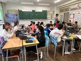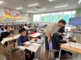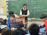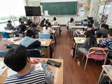 5年生は、理科の時間。4年生の時には、地面に降った雨水は、高い所から低い所に流れることを学びました。5年生では、「流れる水には、どんな働きあるのか」について、考えます。この時間には、上流、中流、下流の石をそれぞれ選んで、どうしてその場所の石なのかをみんなに説明する授業でした。3択なので、答えは、なんとなくわかります。ここでは、知識だけでなく、周りの人の意見を聞いて、自分の意見を発表できることを学習しているようでした。