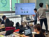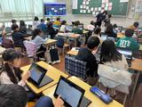 グループで話し合った後、みんなの前で意見を発表する人を決めます。決め方は、ジャンケン。誰でも、発表できるようにするためにクラスで積み重ねてきたようです。順番に、画面を操作して、なぜ、ここの石はこれだと思うのかを発表していきます。前の人の発表を聞いて、違った表現をして、聞いている人たちを納得させているのは、発表の仕方が育っているなと感心しました。