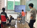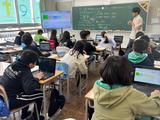 単位を揃えてどちらが混んでいるか比べる「単位量あたりの大きさ」の学習、前時で学習したことを確認した後、「どのように人口密度を求めればよいか」を考えていました。人口密度とは、1平方キロメートルあたりの人口のこと。しっかりおさえてから、各自それぞれ「誰と、どこで、どこまで」の計画を立て、学習を進めていました。何を求めればいいのか明確なので、素早く計画を立てて、散らばっていきます。1人でじっくり考えたい子、2人組、3人組になる子たち、「今日は、先生とやろうかな。」と黒板の前に移動する子たち、様々でした。