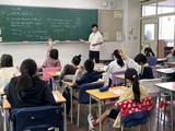 2年生の教室に行くと、黒板に、「人生はつの6時間目」と書かれていました。そうです、2年生は、今日から6時間授業が始まるのです。6時間目が始まる前に、感想を聞いてみました。「えー。疲れちゃう。」「6時間目までもつかな。」から、「少し不安だけど、楽しみ。」まで、いろいろ話してくれました。