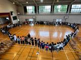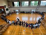 先生の話を聞いて、きびきびと動く子どもたち。最初で最後の練習が体育館になりましたが、賢い西みの子どもたちは、25日にも、しっかり動くことでしょう。当日の閉会式の最後には、運営委員会によるお楽しみのイベントがあります。1年生のキョトンとした顔がかわいかったです。