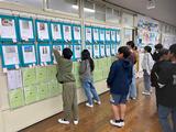 今日の5時間目の学習は、2組は、探した虫の住みやすいすみかを作るため、本や図鑑を使って調べました。どんどん見つけて、グループの人たちと協力して調べていました。1組は、虫を観察して「虫のひみつ」を発表していました。壁にも、今まで観察して見つけた秘密がびっしり貼られていました。お友達の秘密を聞いた後、本当かもう一度確かめに観察をしていました。