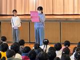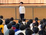 代表の子どもたちが、頑張ってきたことやこれから頑張りたいことを発表してくれました。漢字を覚えるように頑張ってきたので、これからも勉強を頑張りたい。社会の学習でメモを取ったり、どうしてか考えたりしてきたので、これからもいろいろ調べて、たくさんのことを知りたい。上級生に挨拶の大切さを教えてもらったので、私も挨拶が大事だと教えられる人になりたい。など、自分のたくさんな思いをメモを見ず、立派な態度で堂々と発表しました。話を聞いているみんなも話している人をしっかり見て、話を聞き、とても立派でした。最後に、校歌を歌いましたが、ますますのびやかな歌声が体育館中に響きわたりました。2026年、令和8年、午年、今年も、西みにとって、素晴らしい年になりそうな予感がした「授業始まりの会」でした。