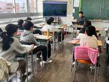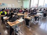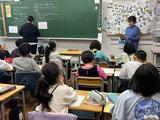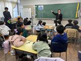 4年生の教室に、区役所の危機管理担当の方がいらして、風水害の時の避難の仕方について、お話をしてくださいました。4年生に合わせた、とてもわかりやすいお話で、みんな食い入るように聞いていました。手元のハザードマップを見ながら、西御幸小学校の周りは、水害に合うと2週間も水がひかない場所だということに驚いていました。でも、風水害の避難では、台風が来るまで、時間があるから、「何を準備しておくかよく考えてほしい。」と話されていました。台風が来る前に、食料や水を買っておいたり、停電に備えて懐中電灯やロウソクなどの明かりを用意したり、万が一、学校などに避難した場合のことを考えて必要なものをもっていく準備をするなど、考えて行動をすることが大切だと、話されていました。避難場所は、学校でなくても、おばあちゃんちが安全なら、そちらに避難してもよいことも付け加えていました。学校にある備蓄倉庫は、地震の時のものだから、学校に来ても、渡すことができないので、食料や水ももっていかなければならないと聞いて、子どもたちは、これまたびっくりしていました。