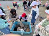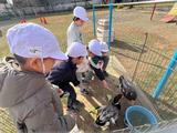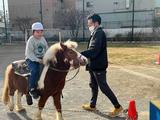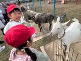 2時間目は1年生、3時間目は2年生に分かれて順番を守って、動物たちとふれあいました。ポニーに乗るのは難しそうと思ったそうですが、みんな上手に乗れました。「落ちそうになったけど、大丈夫だったよ。」「すごくかわいかった!」と、目を輝かせて話してくれました。自分が気に入ったモルモットを抱っこして、持ってきた野菜を食べさせていました。「見て見て、ぼくのニンジンをモグモグ食べているよ。」と、嬉しそうに教えてくれました。ヒツジやヤギは大きいので、おっかなびっくりに近づいて、おとなしいとわかると近づいて、「ヒツジは、よく食べるね。」と言いながら、ニンジンやコマツナを食べさせていました。ヒヨコは、小さくてかわいくて、ふわふわしているので、抱っこしてにっこり。「ふわふわだよ。」「お母さんにもだっこさせてあげたい。」と一緒に眠ってしまいそうな顔でヒヨコをなでていました。