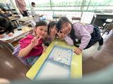 最後に、席に座り、先生から「友だちのすごろくで遊んで、よいと思ったことがある人がいたら教えて。」と聞かれると、たくさん手が挙がりました。お友だちのよい所をいっぱい見つけていました。自然に、作品の鑑賞の時間が出来ていました。それは、相手のよい所を認める時間でもありました。こうした積み重ねが、仲よしのクラスを作るのだと思いました。