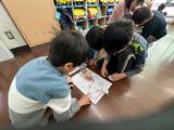 すごろくが出来上がると、声をかけ合い、作ったすごろくで遊びだしました。コマにもアリやモグラがかかれていて、テンションが上がります。サイコロも手作りです。サイコロを振って、出た数だけ進みます。みんなで数をかぞえて間違えないようにしていました。なかなか終わらないくらいたくさん丸がかかれたすごろくもありました。みんながゴールして、1回終わると、もっとおもしろくしようとすごろくにかきたしたり、色を塗りたしたり、他のすごろくで遊んだりと、思うがままに行動しています。夢中になって遊んだ時間でした。
