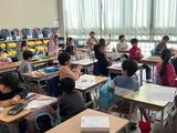 2組は、自分たちを守ってくださっている内の一人、「スクールガードリーダーさん」をお招きして、お仕事やどのような思いをもっているのか、お話を聞いたり、質問をたくさんしました。朝、私たちの登校を見守ってくださるスクールガードリーダーさんのお名前を初めて知って、今まで、気もかけずに過ごしてきたことに驚いていました。自分たちの安全を地域の人たちが守ってくださり、自分たちができることをすること(自助・共助・公助)が大事なことがわかったようでした。何でも意味があることがいっぱい、知らないことがいっぱい、調べてみたいことが、また、広がったようです。