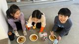 お餅を焼いているのを見ていると、うっすら焦げ目がつき、お餅も膨らんできました。「ひっくり返そう。」と、箸を使って上手に返していました。「もう、いいんじゃない。お醤油につけて食べよう。」とそれぞれのお皿の上に、焼き餅を取りました。「うーん。おいしい!」「最高!」「いつものよりおいしい!」と言いながら、焼き餅を味わっていました。