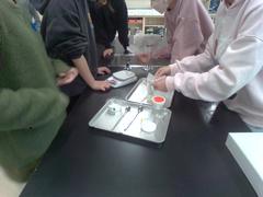 「見えなくなっただけで水の中に残っている」という予想から、実験計画をグループで相談し実験まで自分たちで行いました。
