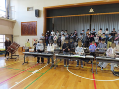 体育館で学年全体で合奏を合わせるのは初めてだったのですが、練習を重ね、息が合ってきました。本番を楽しみにしていてください。