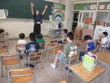 校庭の気温が高いため、室内で十分に休憩を取りながら活動しました。