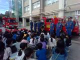 社会科の「地域の安全を守る」では、消防署・消防団の方が来校してくださり学習をしました。消防車両を間近でみて、いろいろな装備・機材について学ぶことができました。子ども達一人ひとり防火衣の着装体験を行い、その重さを体感することができました。また、隊員の方が着装する様子を目の前で見て、その速さに驚かされました。日頃の訓練の大切さを教えていただきました。