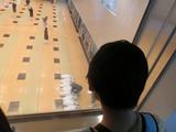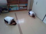 廊下や階段にいた児童も、訓練の合図で体を低く、頭を守るだんごむしのポーズをとることができました。