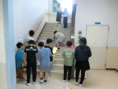 「多摩川が氾濫し、学区内まで増水する危険がある」という想定のもと、3階以上に避難する訓練をしました。