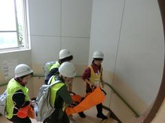 けが人を想定した避難訓練を行いました。