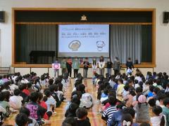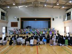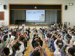 中休みは全校児童向けに、4時間目は保護者向けに体育館で発表しました。