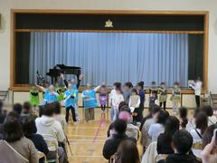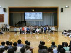 最後は全員合唱で、今月のうた「にじ」を体育館いっぱいに響かせました。