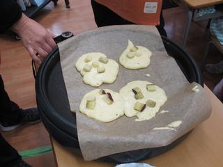 2月の授業参観では、親子調理実習(なかよしクッキング)で「さつまいもパンケーキ」を作りました。