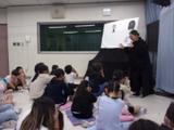中休みにおはなしカーニバルがありました。子供たちは、新しいお話に興味津々と聞き入っていました。