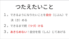 今日の朝会は教頭先生の話でした。今自分ができないことをあきらめないで続けることの大切さを伝えました。教頭先生は「3びきのがらがらどん」を全部覚えて、暗唱できるようになりたいという目標があり、そのために頑張り披露しました。続けること、それが力になることにつながっていきます。