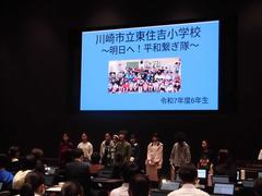 6年生の代表10人が川崎市役所で開かれた「みらいねっと~キャリア在り方生き方教育全市交流会~」に参加し、4年からの総合の学習で3年間学んだことを発表しました。「~明日へ!平和繋ぎたい~」として、各自のテーマを各々の方法で発表しました。堂々とわかりやすく発表する姿は素晴らしく、たくさんの賞賛の言葉をいただきました。