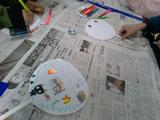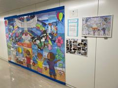 6年生は平和について学習しています。平和への思いを様々な方法で伝えています。その中の一つ、6年生の児童が「平和の心の中」をイメージして描いた絵をもとに、他の6年生83人と先生たちで協力して色を塗り、120枚の画用紙を張り合わせて作りました。この絵は今、川崎市役所南庁舎に飾られています。