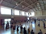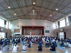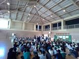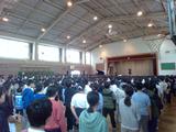 体育館で全校音楽集会が開かれました。10月の運動会で歌う「ゴーゴーコ゚ー」を3年生がお手本を見せ、その後全校で歌いました。