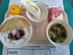 新しい給食室で作られた給食が提供されました。今日も給食はおいしいです。