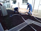 まず、錆を落とし、次に錆止め(水色)を塗り、ペンキ(黒)を2度塗りしています。新しい門と入れ替えたかのような美しさです。きれいになるのは気持ちがいいですね。