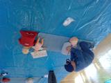 今日は1・2・3年生は校庭で大玉ころがしの練習でしたが、小雨が降っていたのでできませんでした。大きな玉の準備はできています。