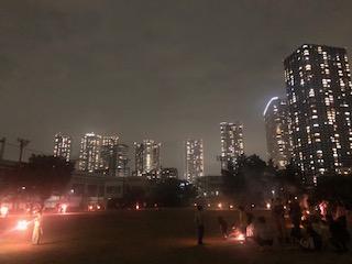 そして夜はPTAふれあい企画ボランティア主催の持ち寄り花火大会。前半と後半に別れ、花火を楽しみました。