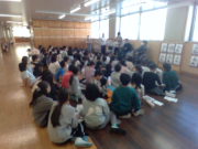 ノンフィクションの本の魅力を、自分の言葉で他の学年の児童に伝えようとする姿は立派でした。