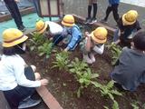種をまいてから約2週間後、元気のよい株の根を選んで、それ以外の株を間引きしました。