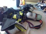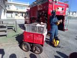 実物の消防車(ホース車)や防火服、消火ホースを目の前にして、子どもたちの目はキラキラと輝いていました。
