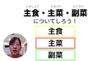 給食の献立を考えるときには、必ず「主食・主菜・副菜」を頭に入れておきながら立てていることを伝えました。