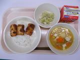 今日の給食は「ごはん、ちくわのかば焼き、塩だれキャベツ、豚汁、牛乳」