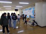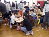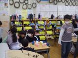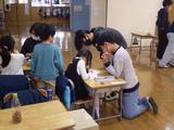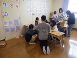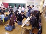 1年生が頑張って用意してきた、あきランドに招待され、いろいろな遊びを一緒に楽しみました。腰をかがめたり膝を床についたりして、1年生と目の高さを合わせながら関わる姿があちこちで見られ、心が温まる時間でした。