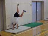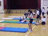 体育 マット運動 手のつき方などに気をつけながら、いろいろな技の練習をしています。