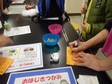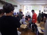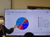 家庭科 おいしい味噌汁を作るコツを考えました。家庭で作っている味噌汁についてのアンケート結果を確認したり、だしが入っている味噌汁と入っていない味噌汁の飲み比べをしました。