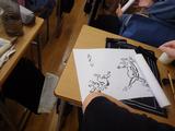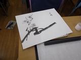 【6年生】書写 水墨画の講師の方をお招きして、水墨画体験をしました。お手本をよく見ながら描いていました。