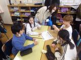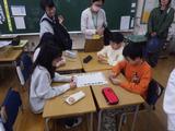 【5年生】学活(共生*共育) 一人4~5枚のカードを持ち、そこに書いてある内容をグループの友達に伝えて、協力しながらお題を解決していく活動をしました。言葉だけで伝えるのは難しい部分もありますが、何回も伝えたり「もう1回言って」と聞き直したりしながら頑張っていました。