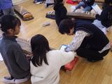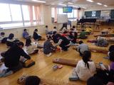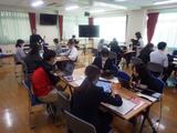 児童の下校後には、教職員が授業について振り返ったり講師の先生のお話を聞いたりしました。